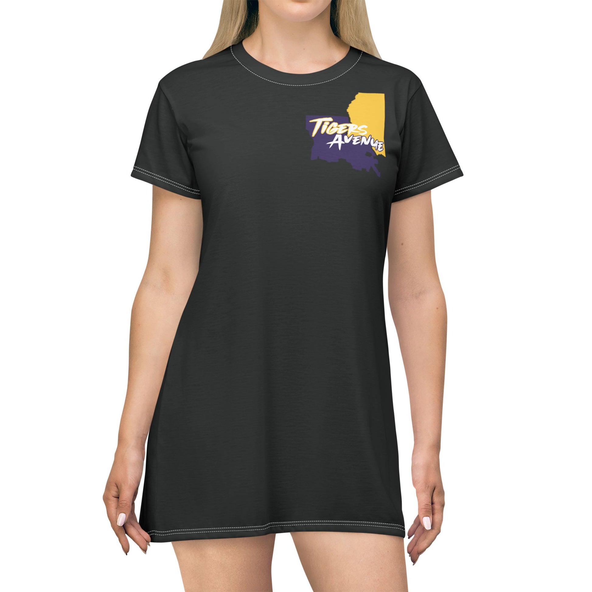 This All-Over-Print T-Shirt Dress is tagless, custom cut and sewn to match every style. The fun prints will make this t-shirt dress a great piece to sell online.